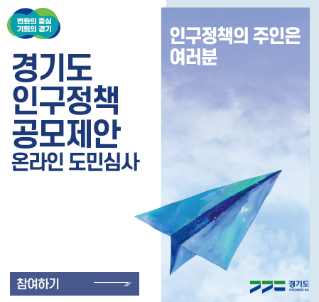 「경기도 인구정책 제안공모」 온라인 도민심사에 참여해 주세요.